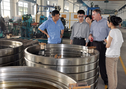 2013年6月6日,美國卡特彼勒公司全球采購項目負(fù)責(zé)人及卡特彼勒(蘇州)有限公司平地機采購主管到公司參觀訪問。公司總經(jīng)理許廈生,常務(wù)副總經(jīng)理陳晉輝等親切接待了客人,并向客人詳細(xì)介紹了公司的現(xiàn)狀、生產(chǎn)及銷售情況,雙方就大齒圈,軸套,關(guān)節(jié)軸承領(lǐng)域的進(jìn)一步合作交流了意見。此次訪問增進(jìn)了雙方友誼,增強了雙方合作信心,有助于促成更深領(lǐng)域的合作。