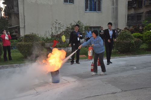 緊接著指揮人員讓參加演練的人員在大樓前集中,教官現(xiàn)場(chǎng)講解和演示用干粉滅火器滅火的要領(lǐng),并讓參演人員使用干粉滅火器現(xiàn)場(chǎng)滅火體驗(yàn)。演練結(jié)束后,安全管理部人員就本次演練活動(dòng)進(jìn)行了分析和小結(jié)。