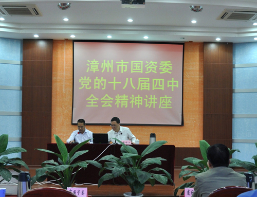 2014年12月1日下午,“漳州市政府國(guó)資委黨的十八屆四中全會(huì)精神”講座在我司舉辦,漳州市委講師團(tuán)團(tuán)長(zhǎng)黃瑞土應(yīng)邀宣講,來(lái)自國(guó)資委、片仔癀、漳龍、力佳、國(guó)投及我司近200人參加了講座。