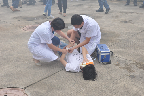 醫(yī)務(wù)人員對疏散中受傷的人員進(jìn)行應(yīng)急治療