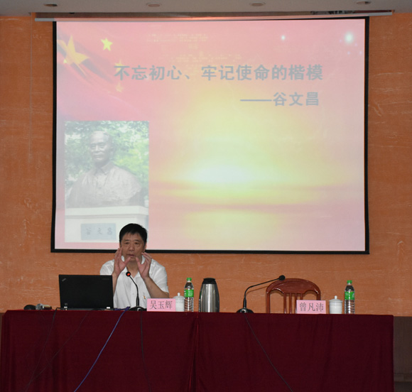 ????2019年9月23日上午,公司黨委書記、董事長曾凡沛在俱樂部會(huì)議室主持召開第二場 “不忘初心、牢記使命”主題教育集中學(xué)習(xí)研討會(huì),邀請中共中央黨校特約研究員、中國作家協(xié)會(huì)會(huì)員吳玉輝講授《“不忘初心、牢記使命”的楷?!任牟?,公司領(lǐng)導(dǎo)、各黨總支、黨支部書記及支委、中層干部及主題教育領(lǐng)導(dǎo)小組辦公室成員參會(huì)。