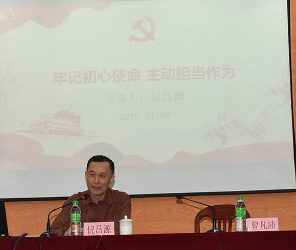 ????2019年11月8日下午,漳州市國資委四級調(diào)研員倪昌源在公司俱樂部一樓會議室講授《牢記初心使命 勇于擔當作為》專題黨課。公司領導、各黨總支(黨支部)書記及支委委員、中層干部及主題教育領導小組辦公室成員聆聽學習。