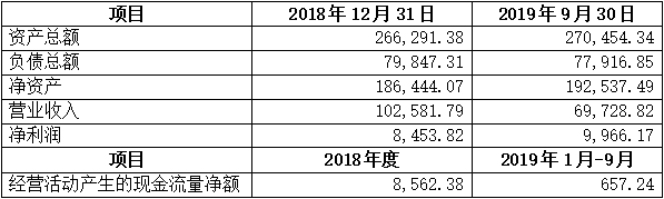 注:公司2019年9月30日的財務數(shù)據(jù)未經(jīng)審計