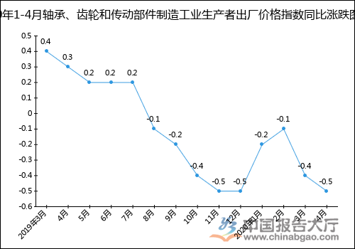 2020年1-4月軸承、齒輪和傳動部件制造工業(yè)生產(chǎn)者出廠價格指數(shù)同比漲跌圖(%)