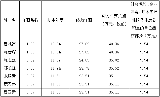 根據(jù)漳州市國資委及《公司董事長、經(jīng)理班子年薪方案》的有關(guān)規(guī)定,公司董事長、經(jīng)理班子的薪酬由基本年薪、績效年薪、任期激勵收入三部分構(gòu)成,同意將公司董事長及經(jīng)理班子人員2019年度薪酬方案修訂如下:
