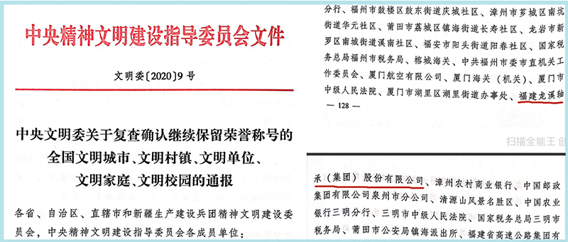 今后,公司將持續(xù)堅(jiān)持以習(xí)近平新時(shí)代中國特色社會(huì)主義思想武裝頭腦,深入學(xué)習(xí)貫徹落實(shí)黨的十九屆五中全會(huì)精神,不斷增強(qiáng)“四個(gè)意識(shí)”,堅(jiān)定“四個(gè)自信”,做到“兩個(gè)維護(hù)”,積極踐行社會(huì)主義核心價(jià)值觀,牢記初心使命,繼續(xù)鞏固和發(fā)展全國文明單位創(chuàng)建成果,強(qiáng)化文明創(chuàng)建頂層設(shè)計(jì),積極爭創(chuàng)第七屆全國文明單位,為漳州創(chuàng)建全國文明城市、加快推進(jìn)新時(shí)代富美新漳州建設(shè),奮力當(dāng)好新時(shí)代新福建建設(shè)先鋒、新增長極和重要引擎作出更大貢獻(xiàn)!
