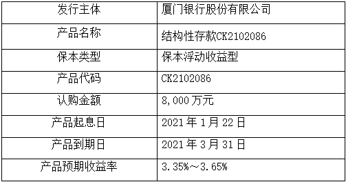 委托理財(cái)受托方:廈門銀行股份有限公司(以下簡(jiǎn)稱“廈門銀行”)。