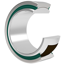 產(chǎn)品特點:外圈有一道軸向縫,材料為不銹鋼,淬火,球面粘貼PTFE編織物;內(nèi)圈材料為不銹鋼,淬火。型號后置代號為XT,表示外圈沿軸向剖分成兩半,用鎖圈固定。
