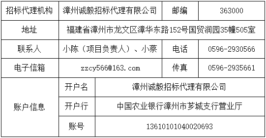名 稱:漳州誠(chéng)毅招標(biāo)代理有限公司