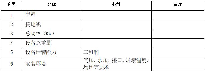 4、設(shè)備服務(wù)要求:供方在按上述供貨范圍提供設(shè)備的同時,須提供與之相應(yīng)的伴隨服務(wù)。包括:技術(shù)資料、安裝調(diào)試、現(xiàn)場試運行、技術(shù)支持、技術(shù)服務(wù)、技術(shù)培訓(xùn)等,以及在文中未提及的、隱含的其他必須由供方提供的相關(guān)服務(wù)。