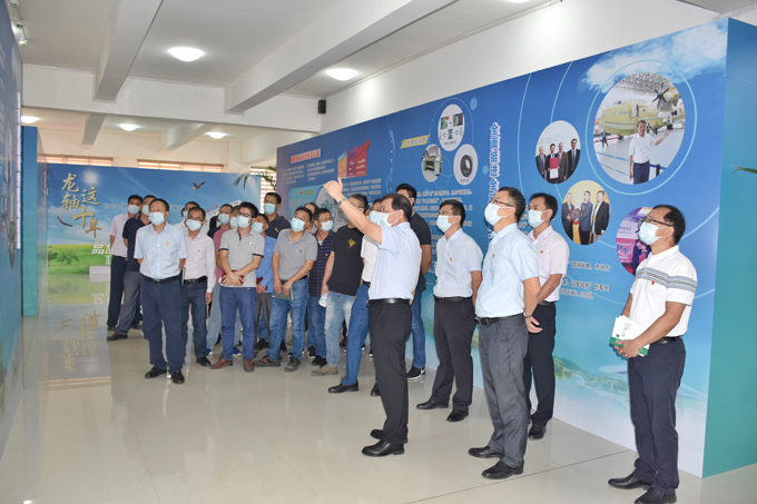 2022年10月17日,龍軸集團(tuán)黨委書記、董事長陳晉輝帶領(lǐng)公司高管,在漳各黨總支、黨支部負(fù)責(zé)人觀看“龍軸這十年——初心如磐存高遠(yuǎn),循脈向前展宏圖”成就展。