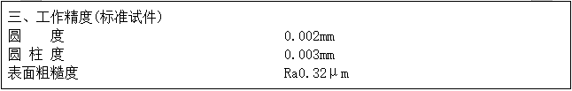 設(shè)備驗(yàn)收時(shí),根據(jù)實(shí)際生產(chǎn)情況,雙方協(xié)商選用其它產(chǎn)品型號(hào)作為驗(yàn)收型號(hào),以產(chǎn)品磨削精度來驗(yàn)證設(shè)備加工精度,及對“主要技術(shù)參數(shù)”中的內(nèi)容進(jìn)行驗(yàn)收