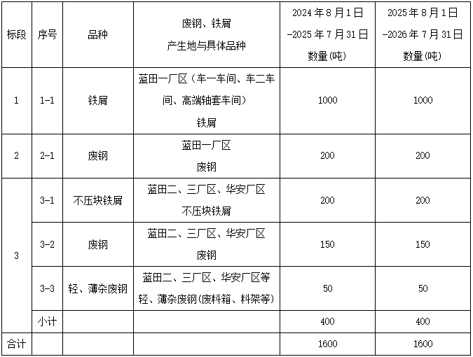 (三)項(xiàng)目?jī)?nèi)容:福建龍溪軸承(集團(tuán))股份有限公司鐵屑、廢鋼等生產(chǎn)性廢料出售,出售總數(shù)量1600噸/年, 兩年總量約3200噸。