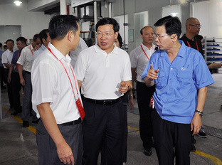 2017年5月9日,田力普(原國家知識產(chǎn)權司黨組書記、局長,左四)、李川(原福建省副省長,左一)到龍軸調(diào)研