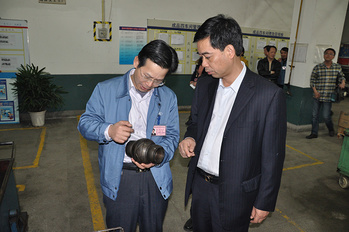 2017年11月6日,陳文釗(原福建省機械工業(yè)廳廳長,左二),夏玉瑚(原福建省機械工業(yè)廳廳長,右三),陳慶友(現(xiàn)任福建省機械工業(yè)聯(lián)合會會長,右一)到龍軸調(diào)研