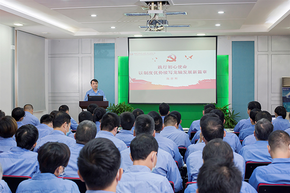 陳晉輝強(qiáng)調(diào),回望公司發(fā)展歷程中的五次困境和一次重大機(jī)遇,都是制度以其強(qiáng)大的生命力,使公司跨越坎坷把握機(jī)遇,更加彰顯我們的制度優(yōu)勢。在當(dāng)前受疫情影響國內(nèi)外經(jīng)濟(jì)下行嚴(yán)重、生產(chǎn)經(jīng)營困難重重的情況下,要從深化改革入手,增強(qiáng)內(nèi)在活力和內(nèi)生動力,堅(jiān)持在黨的全面領(lǐng)導(dǎo)下,圍繞企業(yè)黨建、公司治理、戰(zhàn)略實(shí)施、運(yùn)營管理等環(huán)節(jié),探索建立系統(tǒng)完備、科學(xué)規(guī)范、運(yùn)行有效的能夠支撐企業(yè)長遠(yuǎn)發(fā)展、成熟定型的治理體系,提升公司治理體系和治理能力的現(xiàn)代化水平,為做強(qiáng)做優(yōu)做大國有資本、培育具有全球競爭力的世界一流企業(yè)提供堅(jiān)強(qiáng)制度保障;要強(qiáng)化制度執(zhí)行,增強(qiáng)執(zhí)行力。以“五崇尚”文化力提升制度執(zhí)行意識,以卓越績效理念增強(qiáng)制度自我完善能力,以有效監(jiān)督推進(jìn)制度執(zhí)行落細(xì)落實(shí)。