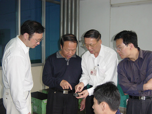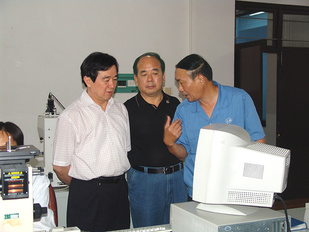 2003年10月22日,鄭松巖(時任福建省經(jīng)貿(mào)委主任,左二)視察龍軸
