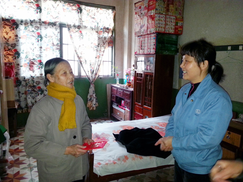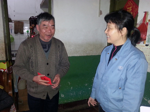 啟動(dòng)儀式后,公司義工代表隊(duì)作為活動(dòng)的第10支義工隊(duì)伍,在新橋社區(qū)工作人員帶領(lǐng)下,將愛心傳遞到了位于前鋒新村、南太武、新橋等地的5戶低保戶人員家中。義工代表們親切的笑臉,熱情的慰問(wèn)為連日來(lái)的低溫帶來(lái)濃濃的暖意。