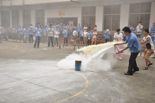 緊接著指揮人員讓參加演練的人員在一樓籃球場集中,闕教官現(xiàn)場講解和演示用干粉滅火器滅火的要領(lǐng),并讓參演人員使用干粉滅火器進(jìn)行現(xiàn)場滅火體驗(yàn)。演練結(jié)束后,環(huán)境與安全管理部人員就本次演練活動(dòng)進(jìn)行了分析和小結(jié)