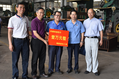 連日高溫,驕陽(yáng)似火。2018年6月6日,福建省總工會(huì)工會(huì)副主席鄭翔、省總工會(huì)網(wǎng)絡(luò)部部長(zhǎng)林國(guó)雄及漳州市總工會(huì)主席王繼躍攜防暑降溫慰問(wèn)團(tuán)蒞臨公司藍(lán)田廠區(qū)生產(chǎn)現(xiàn)場(chǎng)慰問(wèn)一線人員,把組織關(guān)懷送到職工心坎上。公司黨委書(shū)記、董事長(zhǎng)曾凡沛,副總經(jīng)理、工會(huì)主席康安偉接待了慰問(wèn)團(tuán)一行。