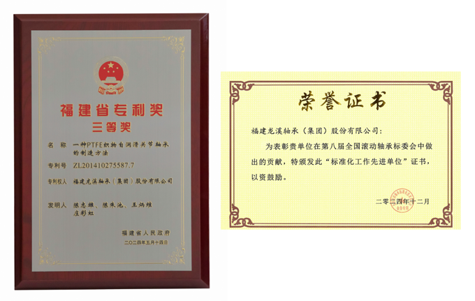 公司前瞻布局未來產(chǎn)業(yè)知識產(chǎn)權(quán),申請專利23項,全年獲授權(quán)專利16項,其中發(fā)明專利13項,數(shù)量創(chuàng)歷史新高,《一種PTFE織物自潤滑關(guān)節(jié)軸承的制造方法》榮獲福建省專利獎三等獎。同時公司積極履行全國滾動軸承標準化技術(shù)委員會關(guān)節(jié)軸承分技術(shù)委員會秘書處單位職責,主導制修訂ISO、國家、行業(yè)關(guān)節(jié)軸承標準20余項,從63家委員單位中脫穎而出,榮獲第八屆全國滾動軸承標委會“標準化工作先進單位”稱號。