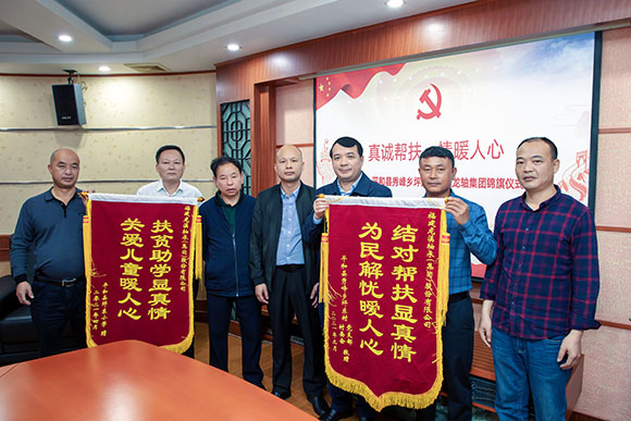 2021年4月19日,漳州市平和縣秀峰鄉(xiāng)坪東村村支書、村長及坪東小學(xué)校長一行到公司贈送錦旗,感謝公司三年多來對他們的幫扶。公司黨委書記、董事長陳晉輝,黨委副書記劉明福熱情接待坪東村一行。