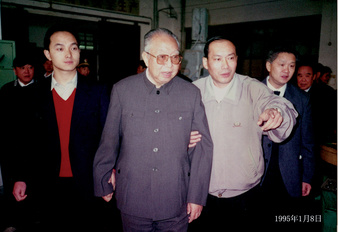 1995年12月28日,陳作霖(原中紀(jì)委書(shū)記,右一)視察龍軸