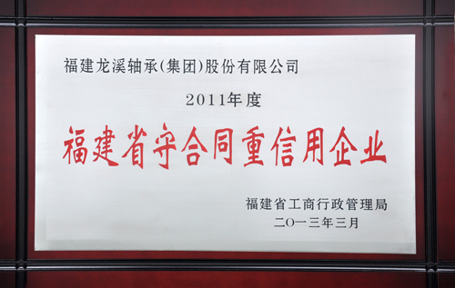 近日,公司在福建省工商局2011年度福建省守合同重信用企業(yè)創(chuàng)建活動(dòng)中獲得“福建省守合同重信用企業(yè)”榮譽(yù)稱號(hào)?! ?/FONT>