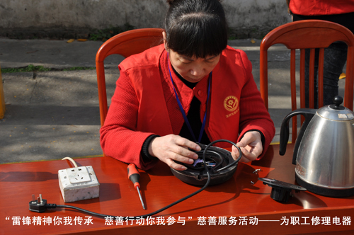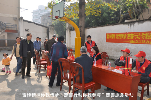 為迎接3月5日第50個“學雷鋒紀念日”暨第13個“中國青年志愿者服務日”的到來,弘揚“奉獻、友愛、互助、進步”的志愿者精神,進一步營造公司志愿服務的濃郁氛圍,2013年3月4日上午,公司慈善義工分隊在俱樂部籃球場開展 “雷鋒精神你我傳承 慈善行動你我參與”慈善服務活動。為社區(qū)居民提供電器檢查維修服務、健康保健咨詢義診服務、愛心理發(fā)服務、防火防盜咨詢服務等志愿服務活動。