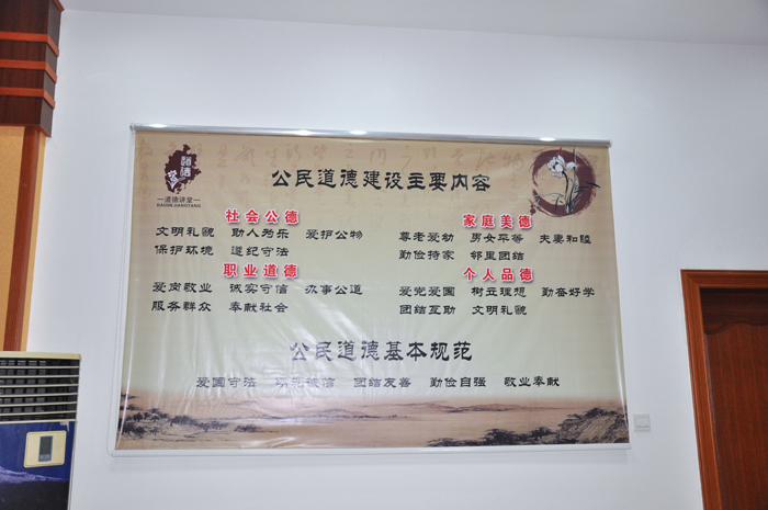 圖9:龍軸道德講堂左后方,(懸掛公民道德建設主要內(nèi)容及公民道德基本規(guī)范一幅