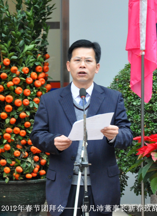 2012年1月21日(農(nóng)歷壬辰年十二月二十八)上午,公司在總部辦公樓前舉辦“2012年春節(jié)團拜會”,團拜會在公司黨委副書記張?zhí)┥闹鞒窒潞唵味f重的進行著,公司高管及2000多名在職、離退休員工參加了團拜會。會上,公司黨委書記、董事長曾凡沛代表公司黨委、總部發(fā)表了熱情洋溢的新春致辭,向全體員工表示節(jié)日問候和崇高敬意!員工代表何國輝也在會上做了誠摯質(zhì)樸的發(fā)言。